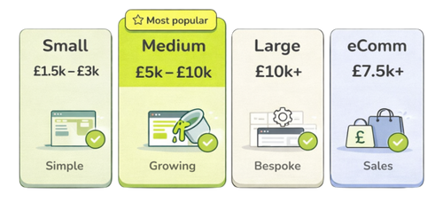 For businesses just starting out, or those that need a refresh without overcomplicating things, smaller sites usually begin from around £1,500 plus VAT. These are straightforward, well designed websites that do exactly what they need to do, without any unnecessary extras.