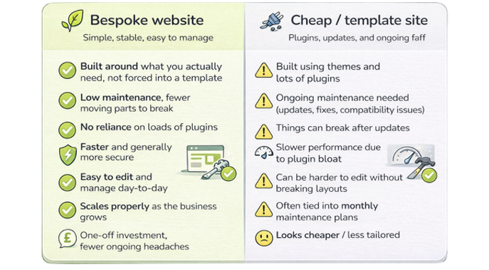 But what we often see is businesses coming back to us later because the site has become difficult to manage, slow, or just not quite doing what they need anymore. By that point, they have usually outgrown it and are ready to start again.